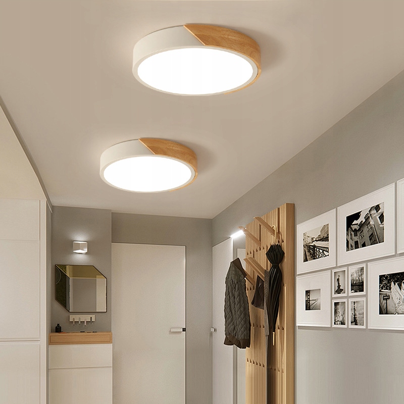 OLIN 50cm biała lampa sufitowa LED Plafon ring drewno żyrandol okrąg do kuchni WOBAKO