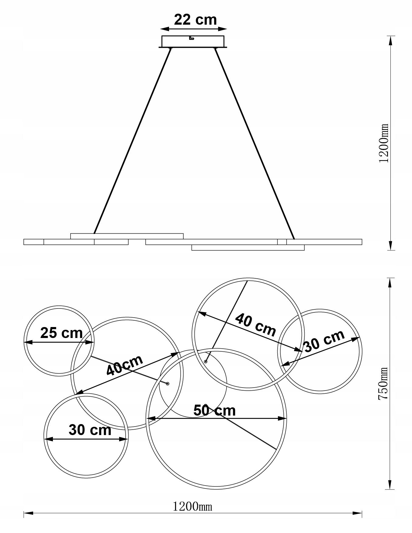 Kupując OSLO VI zyskujesz funkcjonalny i piękny element wystroju wnętrza. To lampa bardzo nowoczesna: cechuje ją prostota formy - trzy różniące się wielkością okręgi umieszczono na linkach umocowanych w maskownicy; okręgi są z metalu pomalowanego proszkowo na czarno, dzięki czemu tworzą subtelny rysunek wraz z umieszczonymi wewnątrz modułami LED, które są źródłem światła; wykorzystuje technologię LED.