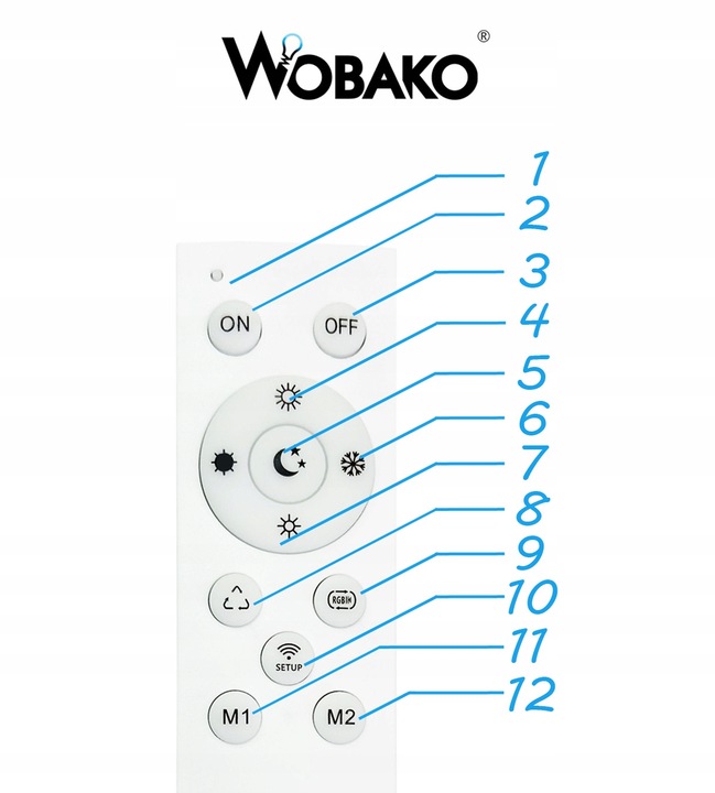 1️⃣1️⃣ i 1️⃣2️⃣ Zapamiętana scena - krótkie naciśnięcie powoduje przywrócenie wcześniej zapisanych ustawień lampy. Długie naciśnięcie zapamiętuje obecne ustawienia lampy.