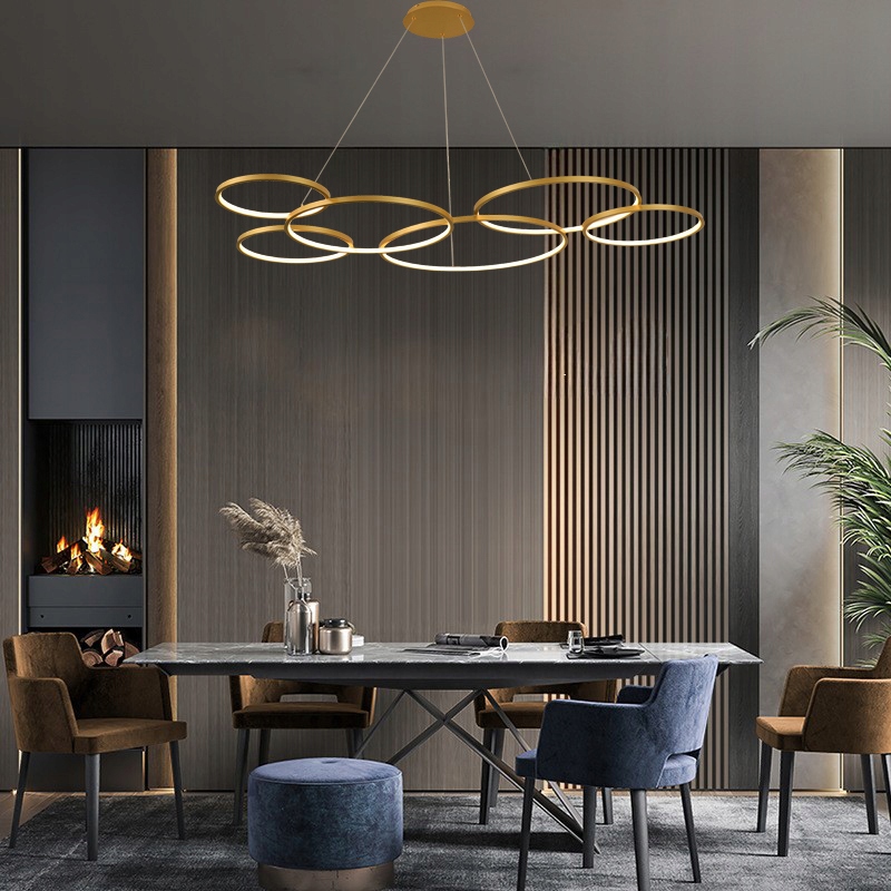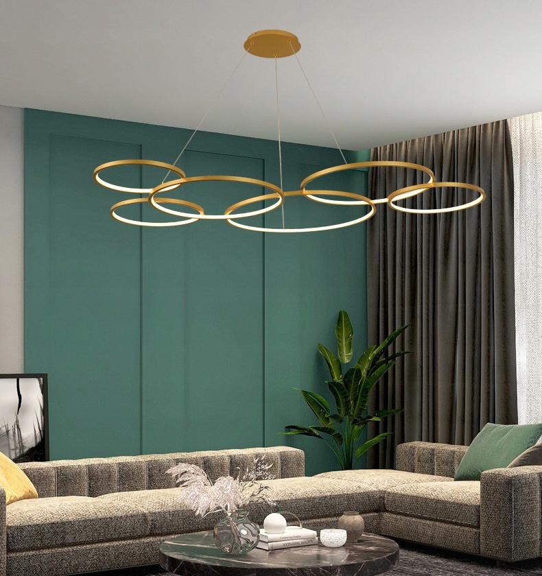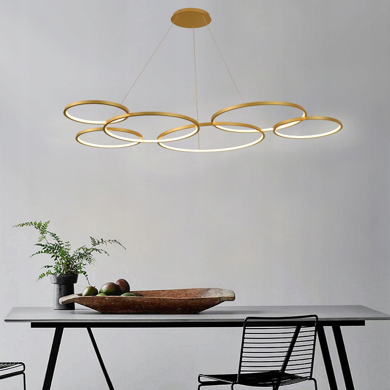 Oslo VI Złota Lampa Wisząca 120cm okręgi ring żyrandol LED Tuya