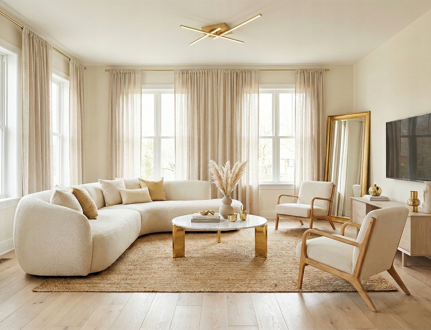 ✅ Boho wytwornie – neutralne światło + złoto = ciepło i wytworność