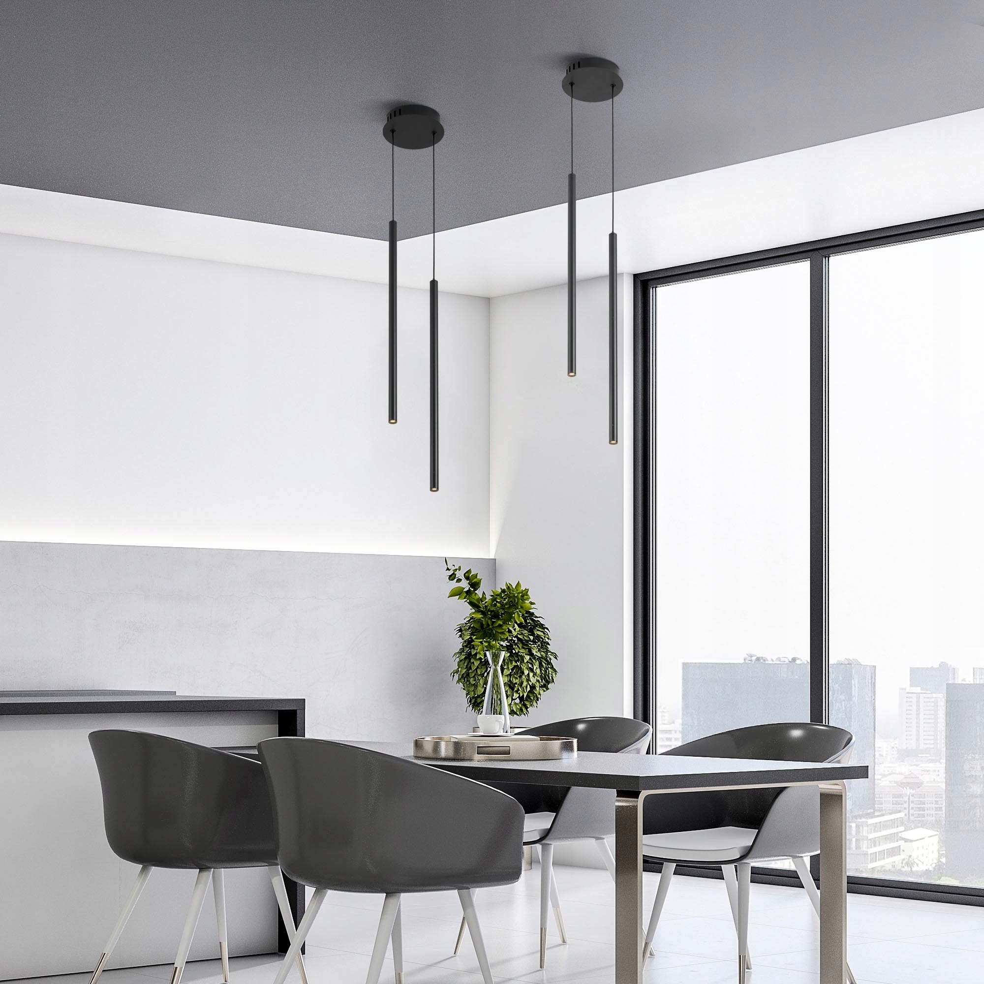 ✅ Regulacja odbywa się szybko i bez demontażu maskownicy, co umożliwia dopasowanie lampy do wysokości pomieszczenia oraz tworzenie różnych kompozycji – od idealnie równych linii po asymetryczne ustawienia.