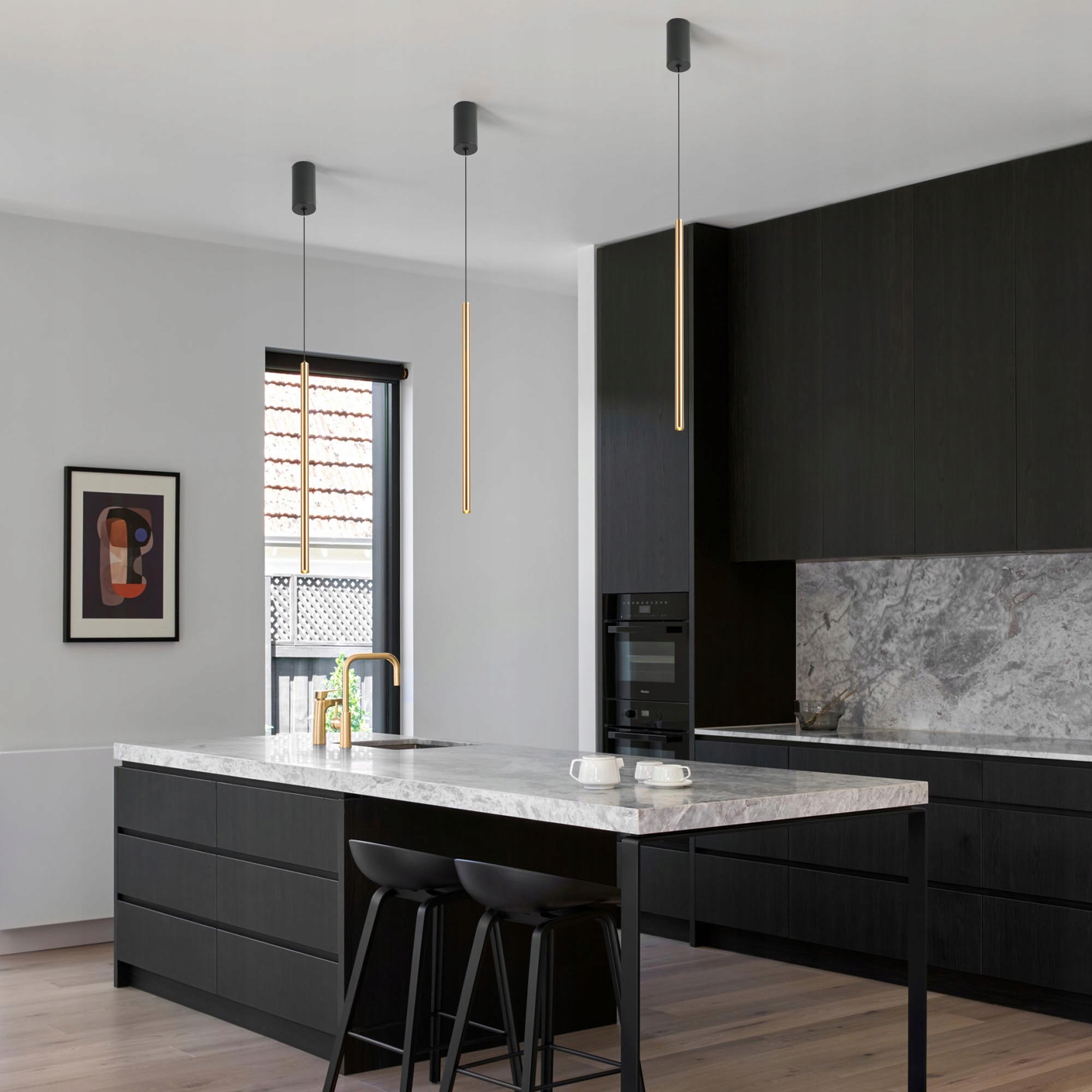 ✅ NANO SLIM 1 czarno‑złota to prosta wizualnie lampa z jedną smukłą, pionową tubą SUPERSLIM o średnicy 1,8 cm, która delikatnie podkreśla określoną strefę w przestrzeni. Całość konstrukcji tworzy bardzo spójną, liniową konstrukcję z delikatnie zaznaczającą strefę punktowym źródłem światła.